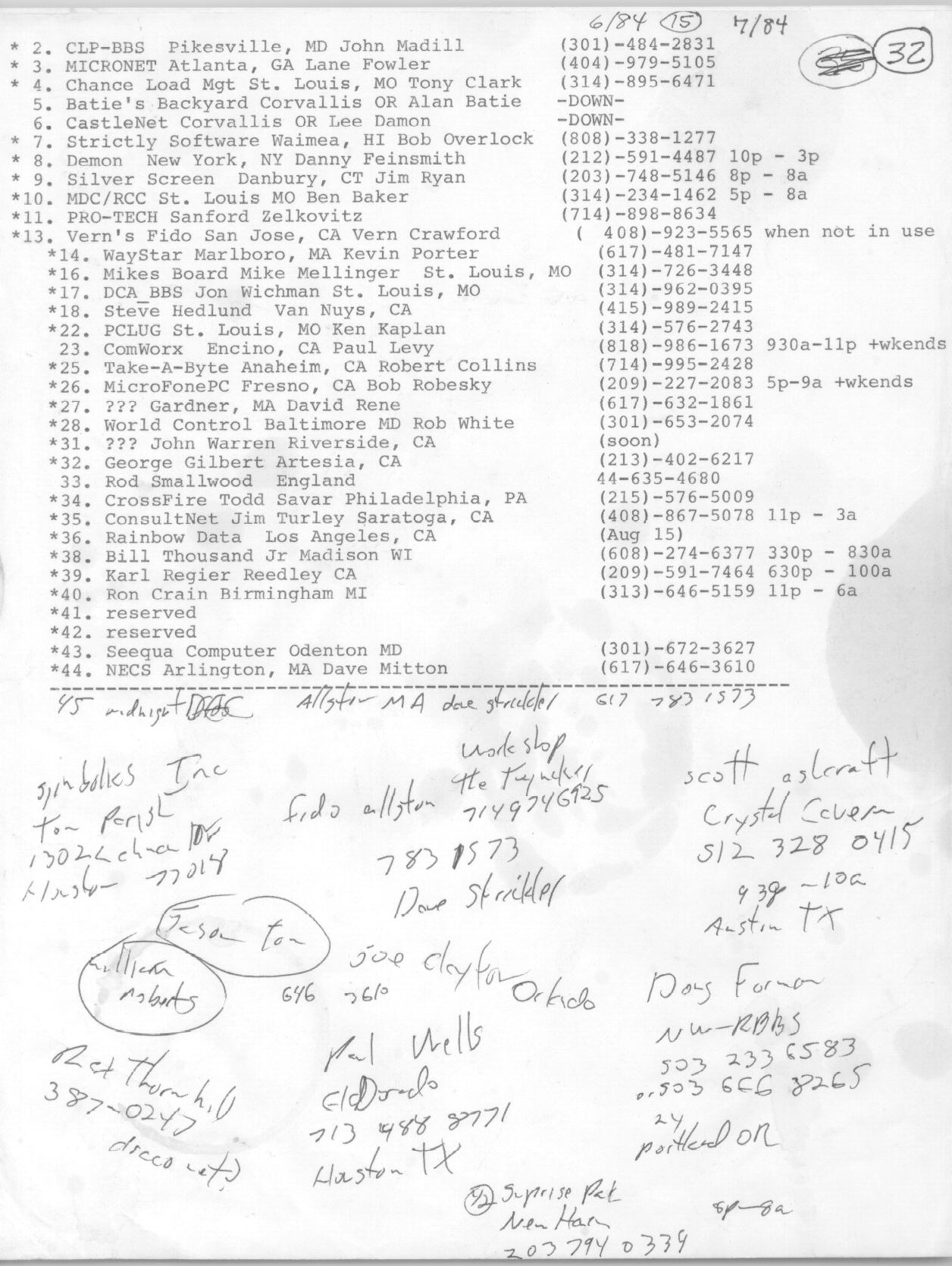 | FidoNet Nodelist from June of 1984