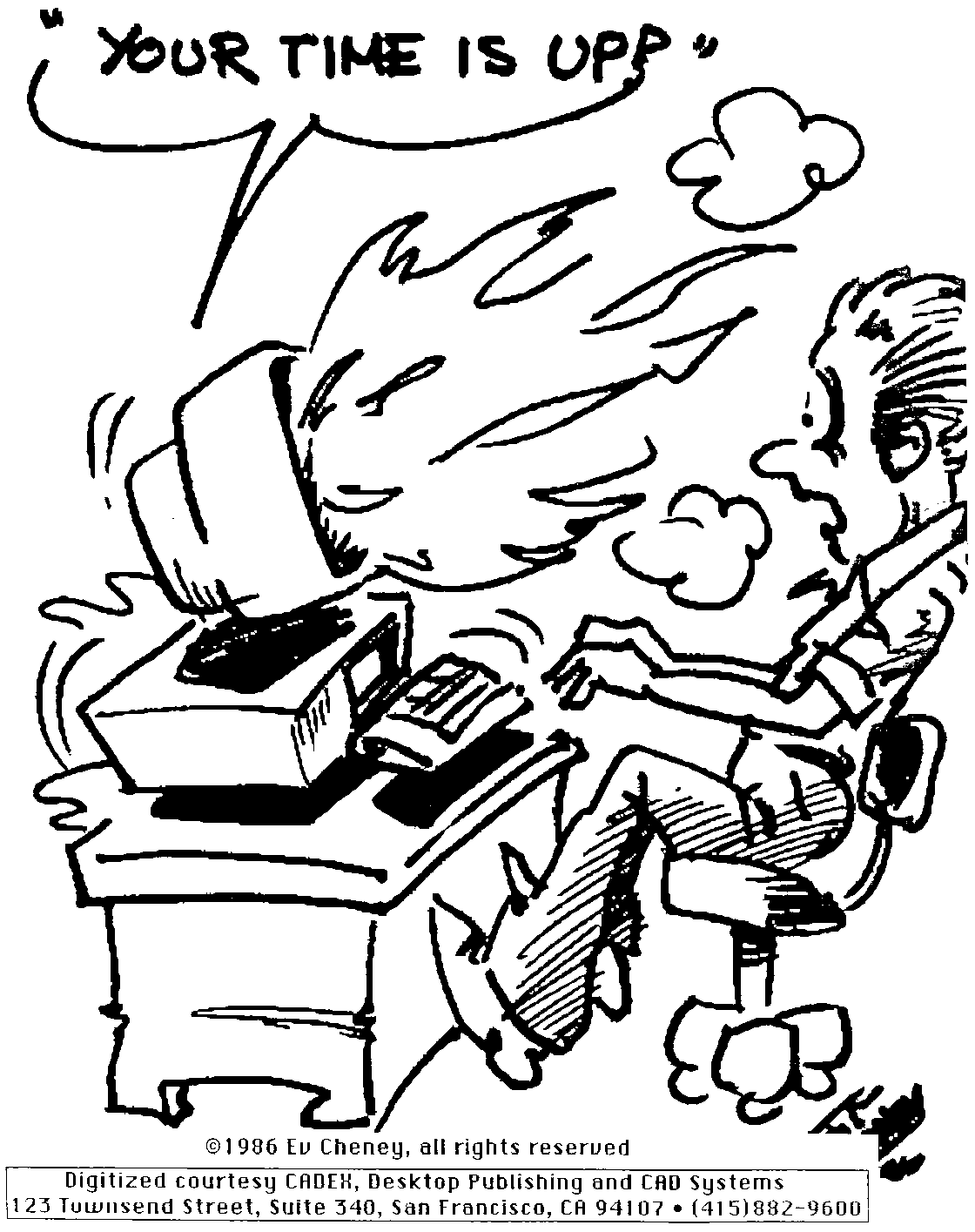| Cartoon: "Your Time is Up" by Ev Cheney (1986)